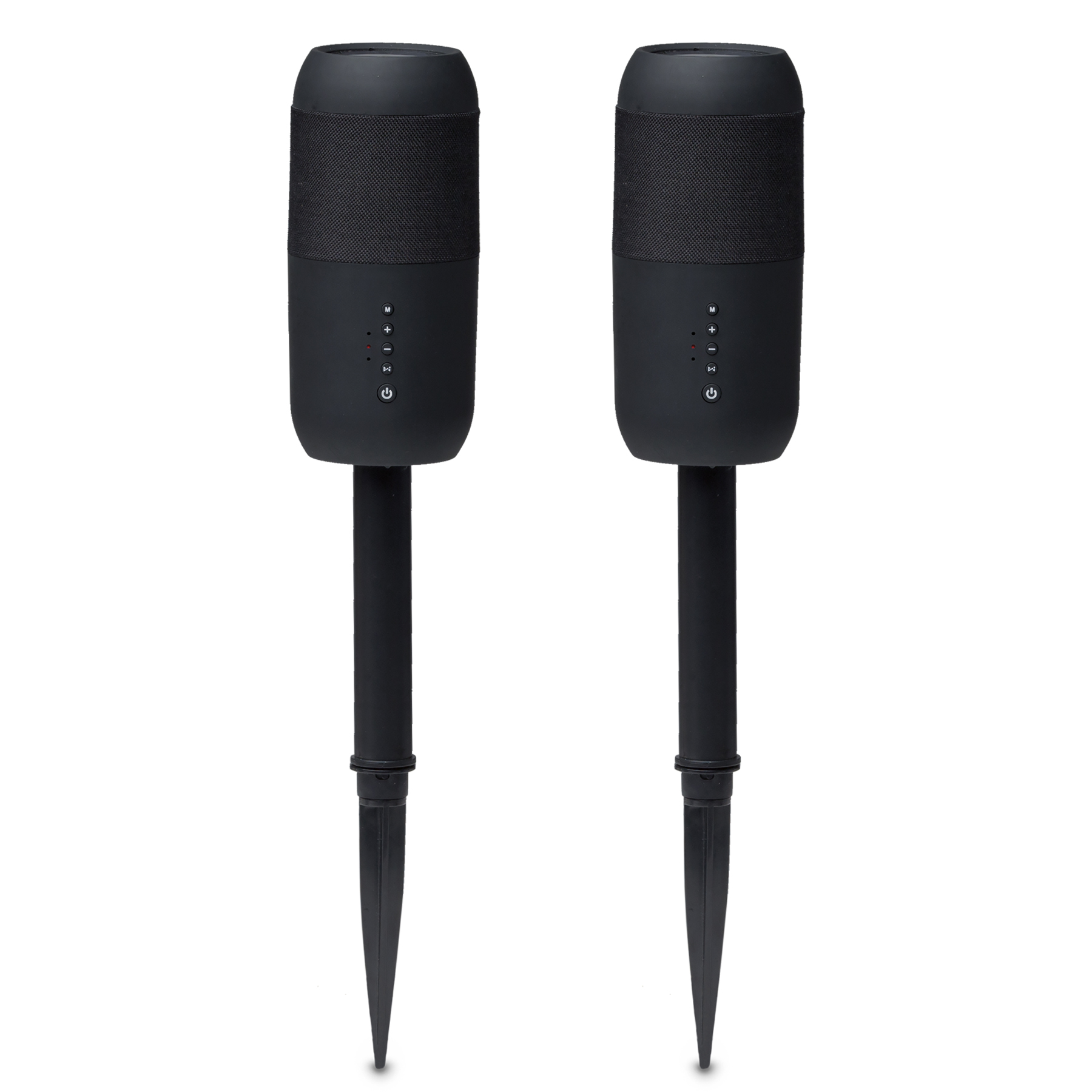 Set includes: 2 x Bluetooth / solar powered speakers with 2 x removeable stakes and outdoor blanket