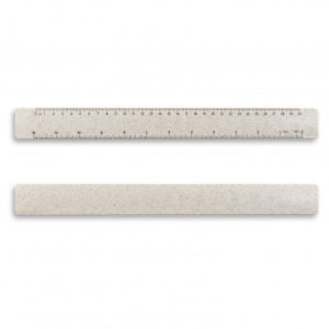 Trendy 30cm ruler manufactured from 30% wheat straw fibre and 70% ABS. It features mm/cm/inches black printing on one side and a scale ruler shape for sturdiness.