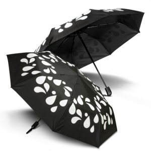 Bring a little magic to rainy days with this compact umbrella, printed with special ink that transforms from white to vibrant colours when wet. Each umbrella comes with a matching sleeve that previews the colours hidden within, adding a playful touch from the moment it is handed over.