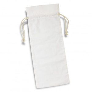 Drawstring wine gift bag that is manufactured from 140gsm cotton.