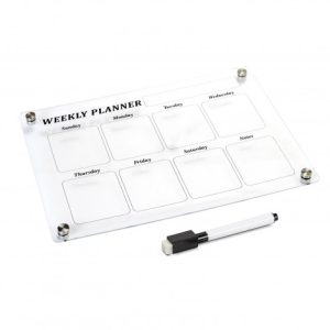 This clear acrylic fridge planner is designed as a versatile, reusable planning surface that adapts to any routine. Its smooth surface works well for customised weekly, monthly or daily planning, meal prep, grocery lists or reminders. Strong corner magnets keep it firmly in place on magnetic surfaces, while optional adhesive backing allows for flexible mounting. With a dry erase marker and clearly labelled components, it offers everything needed to organise busy kitchens or shared spaces.