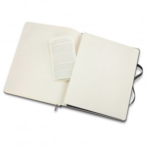 The Moleskine Classic Notebook is the heir and successor to the legendary notebook adopted by artists and thinkers over the past two centuries, used today by contemporary creatives. It is a reliable travel companion, perfect for capturing thoughts and ideas on the move. The classic hard cover, extra-large notebook features 96 leaves (192 pages) of 70 gsm Moleskine ivory-coloured lined paper with rounded edges, a bookmark ribbon, and an elastic closure for privacy. The expandable back pocket provides space for storing notes and mementos and includes the history of Moleskine. A customisable ‘In case of loss’ notice is printed on the first page, while the Moleskine logo is subtly debossed on the back cover and printed on the inside front cover.