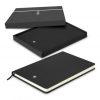 Quality medium-size (approximately A5) notebook presented in a stylish giftbox. The notebook that has 80 leaves of cream lined 80gsm paper, with a thermo PU cover and an elastic band closure with a branded metal slider.