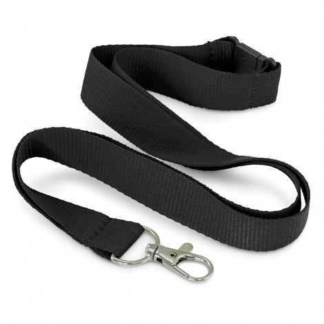 20mm wide lanyard that is manufactured from RPET material which is produced from recycled water bottles and food packaging. The lanyard has a metal clip and a safety clip with other attachments available on request. A production lead time of 25 working days applies to this product by air freight and larger orders can be sea freighted on request to reduce the freight cost.