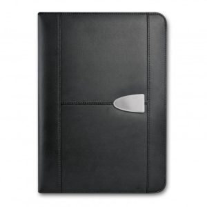 Superior large portfolio with a superb bonded leather cover. It has a lined A4 pad, a business card pocket and a pen loop. Sovrano has a unique metal centre plate which can be branded with the choice of a resin coated finish or a metal insert that laser engraves to a stainless steel finish. It can also be laser engraved directly onto the portfolio and can include individual names for an additional charge. The portfolio surface laser engraves to a matt brown finish.