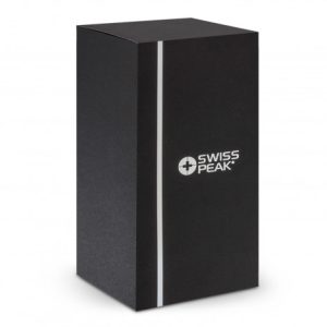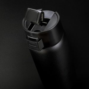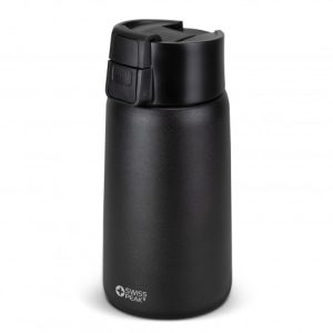 Premium 500ml Swiss Peak double wall, vacuum insulated stainless steel mug with a smart powder-coated finish that will keep drinks warm for hours. Stealth has a wide top opening with a secure screw on lid and a push-button activated flip closure which is spring loaded for smooth, effortless operation. It is ideal for coffee as well as taking soup and food to work or school. This precision mug is BPA-free, and laser engraves to a shiny steel finish. It is presented in a Swiss Peak gift box with an information leaflet. This product is not dishwasher safe, and handwashing is recommended.